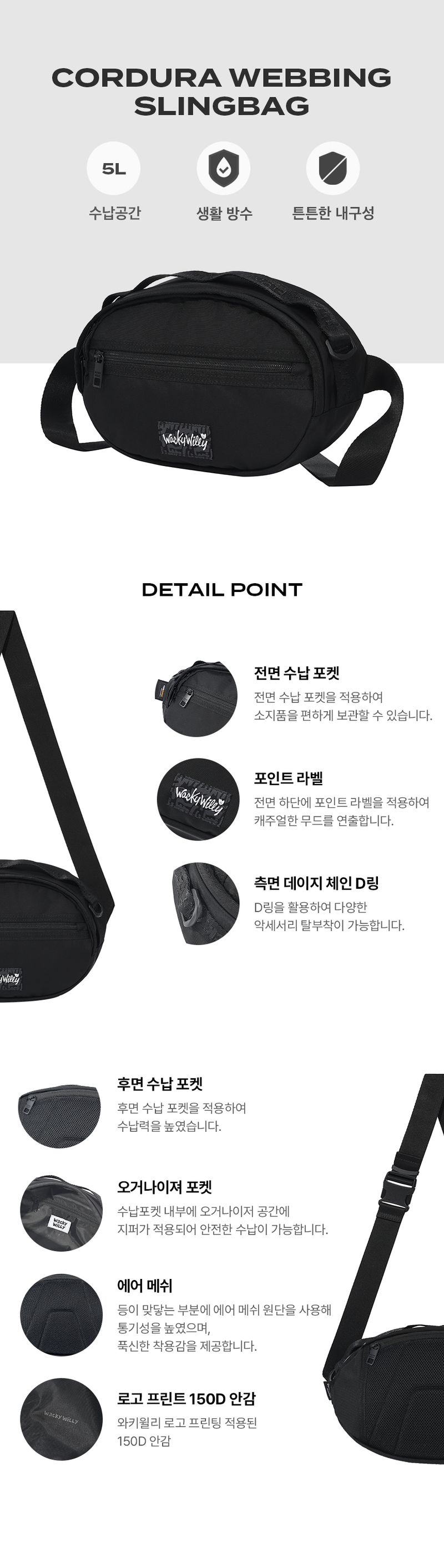 韓國直送 WACKY WILLY - Cordura Webbing Slingback Black