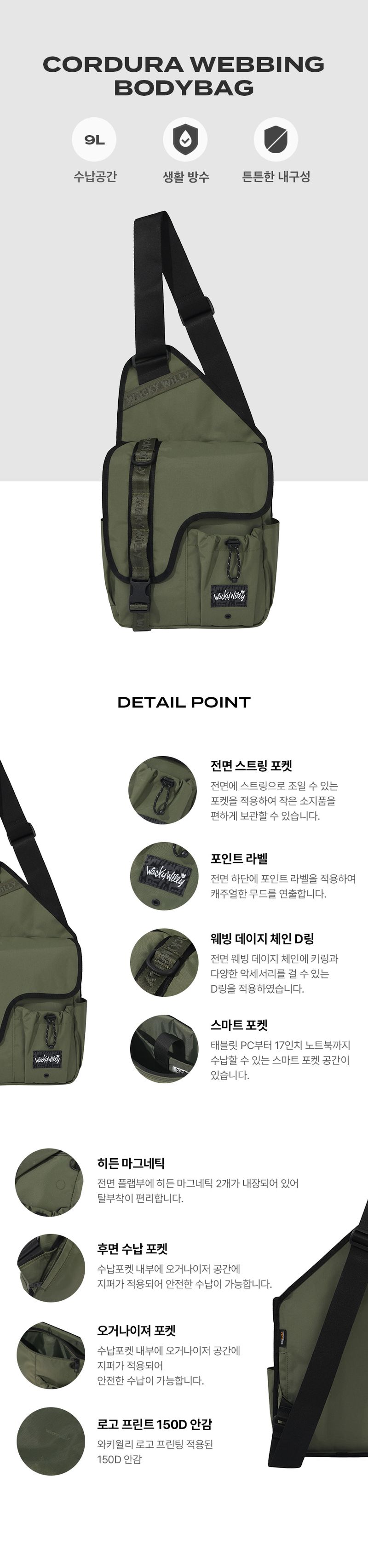 韓國直送 WACKY WILLY - Cordura Webbing Body Bag Khaki